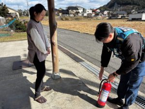 あとは、火災時の通報訓練と消火器の取り扱い訓練。