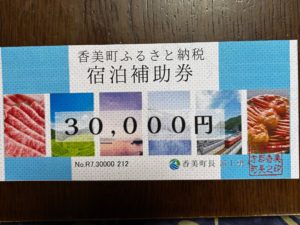 初めてご利用いただいた、『香美町ふるさと納税・宿泊補助券』がこちら。